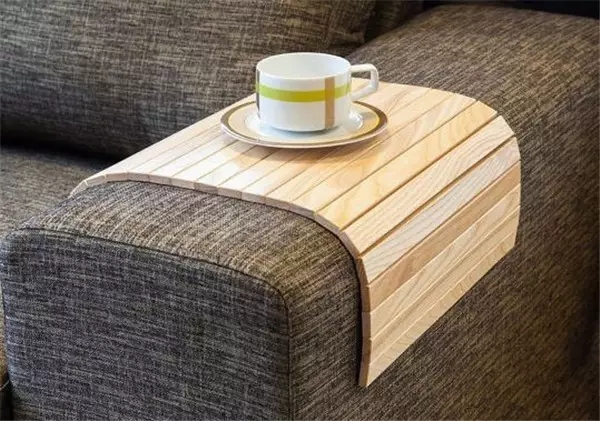 利用沙发边沿设计的小家具,让我们能够方便地窝在沙发里休憩,无论是喝茶喝酒喝咖啡,还是放置零食,都不用担心没地方放了。