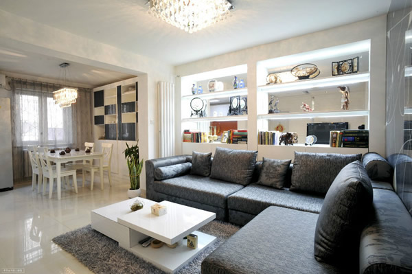 客厅是接待客人的地方,所以灯具需要营造一种温柔的氛围,因此明亮庄重的吊灯或是吸顶灯是首选。若是屋顶墙较高,可以选择较大的圆形吊灯,可以使其显得通彻,灯具的造型和色彩要与家具的摆设相协调。