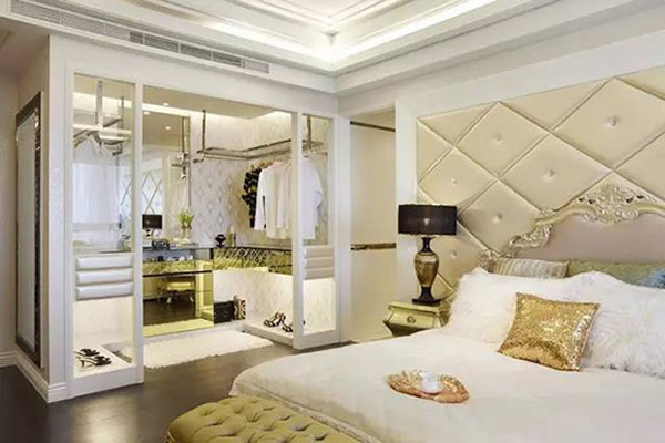 这种衣帽间比较节约面积,空间利用率高,容易保持清洁。一般来说,居家如果能够找出一块面积在4平方米以上的空间,考虑请专业家具厂依据这个空间形状,制作几组衣柜门和内部间隔,作成嵌入式衣帽间了,成为收纳衣物的空间。