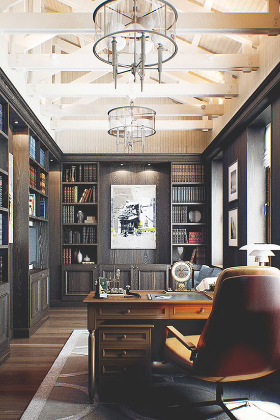 家庭办公室,可以安置在家中的任意空间。用书房做办公室是比较常见的做法。坐在舒服的椅子上,眼前是琳琅满目的书籍,传递出深厚的文化内涵。