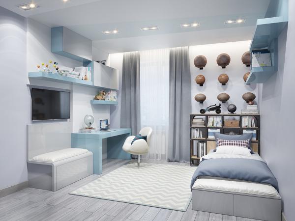 2、空间,男孩子都好动,房间内要有足够的空间给他们进行玩耍,所以不要布置太多家具,床等都尽量靠边放。