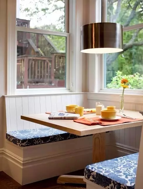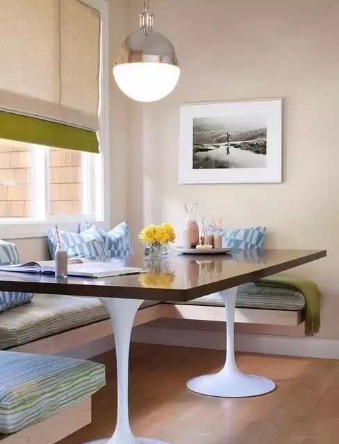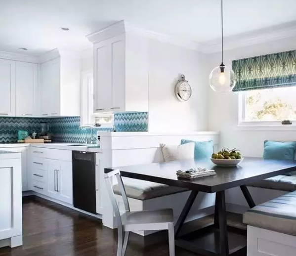 将卡座用在厨房边也是极为常见的。小窗边的卡座,有没有坐在咖啡厅的感觉呢?