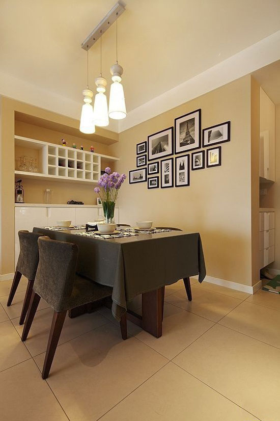 餐厅里的吊灯也可以成为视觉上的焦点,选择一款造型独特的吊灯,能够大大提升空间个性。可以选用几盏吊灯高低错落的布局方式,让照明更有层次感。