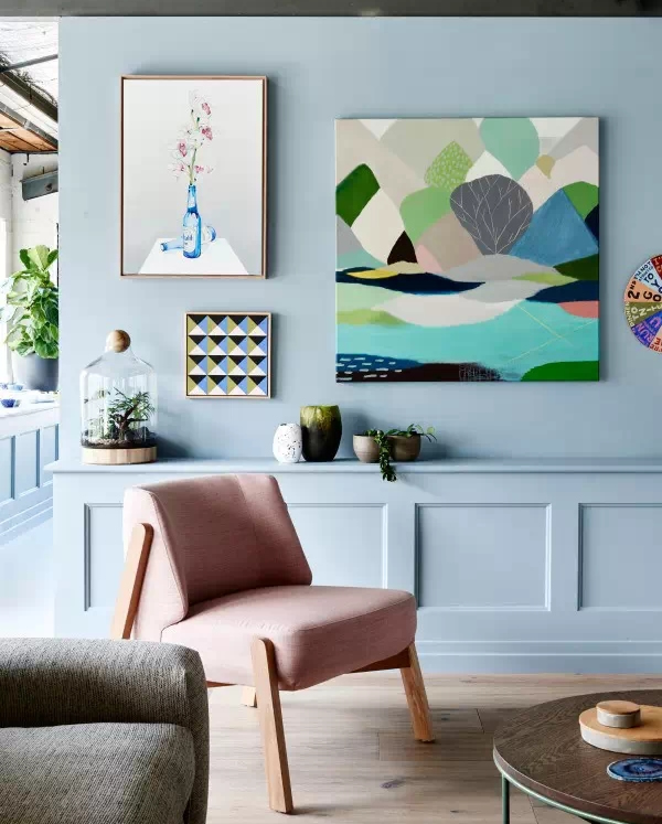蓝色风格的夏天并非全部靠大面积的蓝营造,更换蓝色的家具,增加一些蓝色的小摆件也是不错之选,就可以使你平淡的家居环境一下子清凉起来。一幅波普风格的装饰画,不同层次的蓝与强烈的对比色形成的风趣与热烈,同样可以将蓝色诠释出别样风情。黑与白的简洁,加上可以柔化居室风格的植物,与蓝色搭配也能让夏天的气氛在不知不觉中生发。