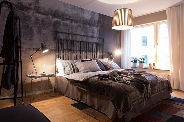 6.床头灯和台灯的选择。最好选择可调节亮度的,即使看书也不会影响到另一半休息。灯罩的材质柔和。水晶灯或者透明玻璃灯罩的台灯,虽然好看,但过于刺眼的光线无论对阅读或是夜里起身,眼球适应度都不太好。最好选磨砂玻璃、布面、贝壳等能使光线柔和的灯罩。灯头高于枕头,让光线从45度倾斜散布下来,更适合看书。