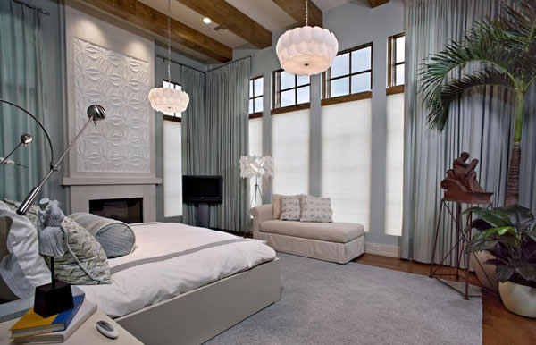 白天的时候,展开上面的帘,不仅能透光,将强烈的日光转变成柔和的光线,还能观赏到外面的景色;拉起下面的帘,强遮光性和强隐秘性让主人在白天也能享受到漆黑夜晚的宁静,满足全天的光线环境。也可以考虑纱帘和遮光帘的搭配使用。