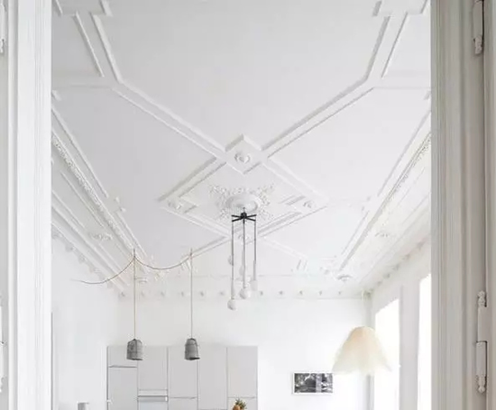 4、现在也有一些以天花四周边缘向内一定距离安装石膏花线装饰,常见于国内样板间。也有老外玩得比较花的。