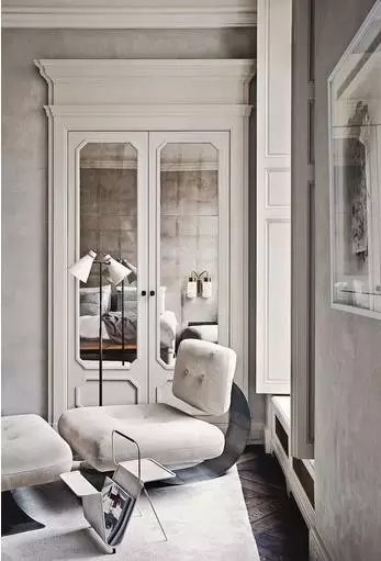 其次,石膏线除了用在天花处外,还可以做墙面造型如墙裙、护墙板。比起实木、MDF 材料,石膏线可以节省很大一笔开支和工期。结合有色乳胶漆或墙纸起到装饰的作用。