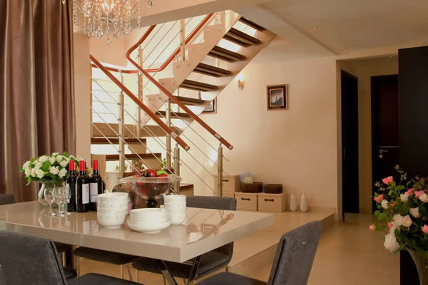 厨房是有三个功能区域:清洗、操作和烹饪,如果这三个能够设置成三角工作区,那么会使厨房工作变得便捷。常用的厨房布局有:单线型厨房、双线型厨房、U型厨房以及L型厨房,需要根据厨房的空间户型来考虑布局问题。