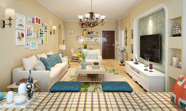 在客厅,应结合隔断柜、装饰柜的设计把一些功能纳入其中。