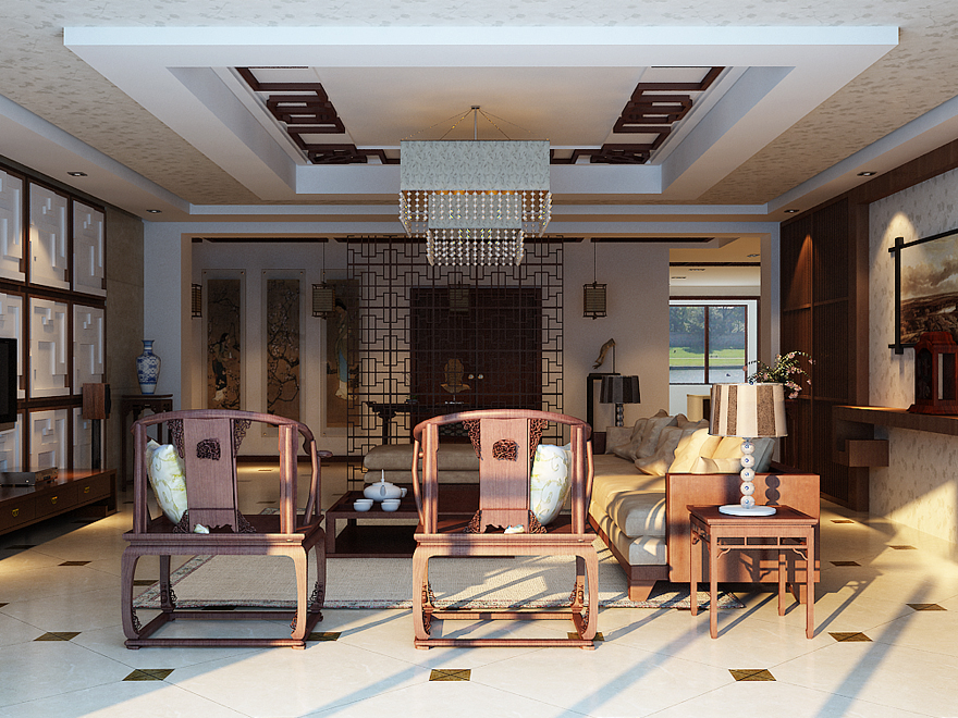 中式风格是比较自由的,装饰品可以是绿色植物、布艺、装饰画,以及不同样式的灯具等。以宫廷建筑为代表的中国古典建筑的室内装饰设计艺术风格。气势恢弘、壮丽华贵、高空间、大进深、雕梁画栋、金碧辉煌,造型讲究对称,色彩讲究对比装饰材料以木材为主,图案多龙、凤、龟、狮等,精雕细琢。