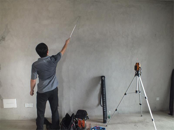 8 、测墙壁地面:用长尺(或者带有水平的专用直尺),靠墙壁地面,检查是否平整,同时观察是否有划痕裂纹,墙面是否有爆点(爆点:生石灰在发成熟石灰时因搅拌不匀没发好,抹在墙上干后就会形成爆点)。