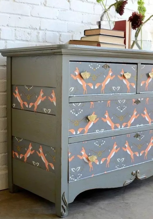 ▲省不得扔的老柜子,重新涂油漆太麻烦,双面胶和壁纸也能完成换新工作。