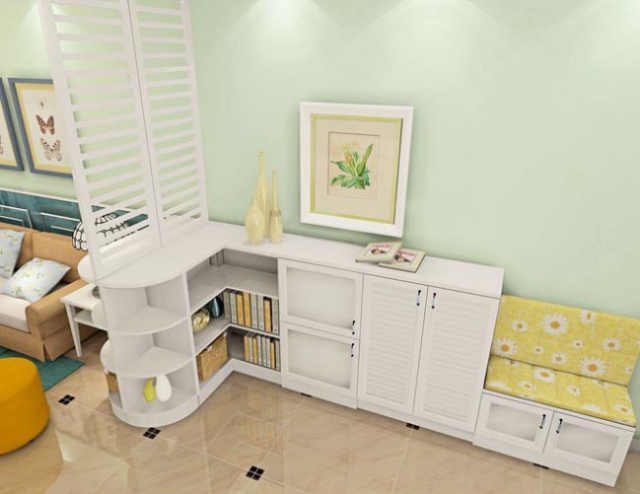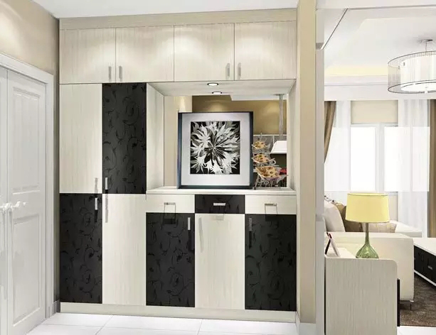 解决方案:在进门处设计玄关柜,遮挡进门视线,有效保护家中的私密性,阻挡进门煞气,在实际生活中还能充当鞋柜、收纳客厅杂物。