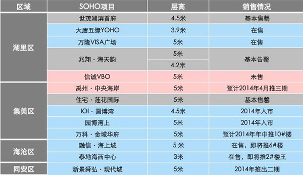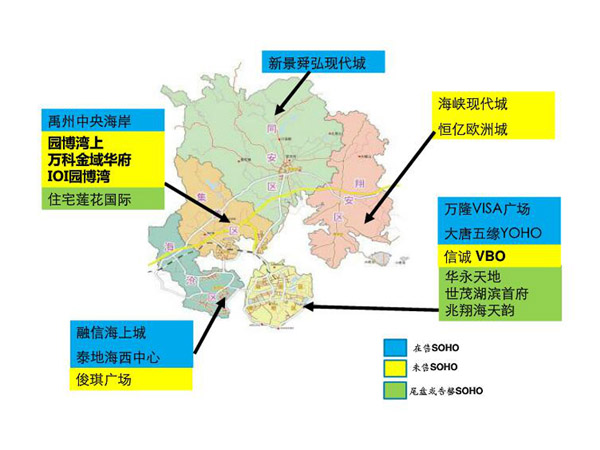 集美区:公共交通建设完善,生活条件便利,住宅区域相对集中,该区域SOHO产品大部分为住宅内容的商业补充。