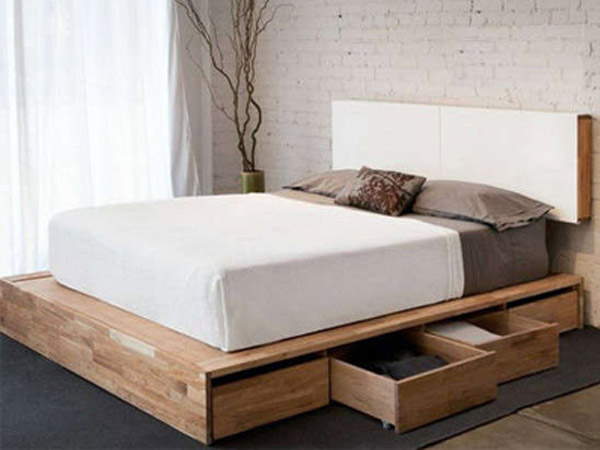 利用床下收纳空间,为了增加空间,可充分利用高度较高的床下空间,把东西摆在床底下。这种方法尤其适用于卧房空间小的房子,可选床架较高的床,这样可供收纳的空间就更多了。