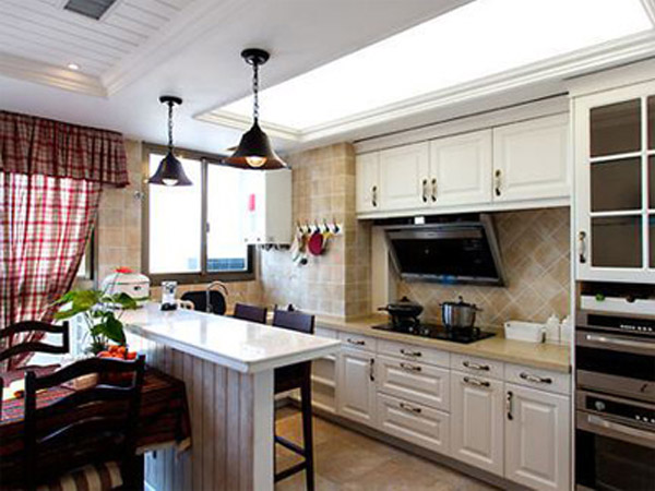 小户型的厨房餐厅建议采取开放式设计,并且可以利用墙面及梁柱下半部分订做多功能餐厨收纳柜。除了可展示收藏的杯盘外,还可设计一个活动的工作台面,作为备餐台、或是烫衣板。除了小东西的收纳,还可针对家中的清洁大型家电,例如电风扇、吸尘器、空气清新机订做大型的专属收纳空间,一个收纳柜解决各种收纳问题。