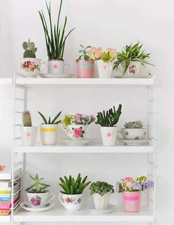 此外,闲置的带有图案或者素色的茶杯、马克杯,也都是种植花草的绝佳器皿,小小的一杯绿色,能给你带来沁心的感官享受。