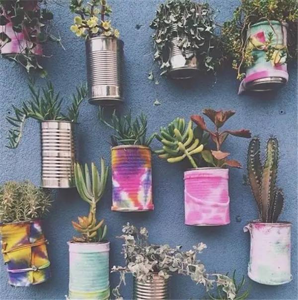 用完的罐头盒子或其他罐子不要扔,收集起来装些土,撒些种子,在罐底凿几个孔,追求貌美的可以自己再在罐子表面涂画上心仪的图案,一个看似随意却新颖别致的盆栽就完成啦。