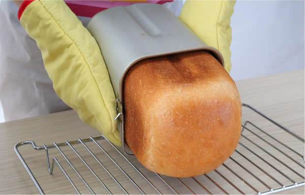 2、 做好的面包,有时候搅拌刀会被面粉粘在面包桶里,不好取出来,有的朋友做完面包以后就懒得拿出来,继续用,这样对机器的损坏也很大。正确的使用方法是:每次使用完以后都要清洁面包桶,用温水稍微泡一段时间,然后就可以取出搅拌刀了,在面包桶内的搅拌轴上抹一点食用油,是为了避免水在轴和孔之间腐蚀。然后每次使用的时候,也抹一些食用油,增加润滑。
